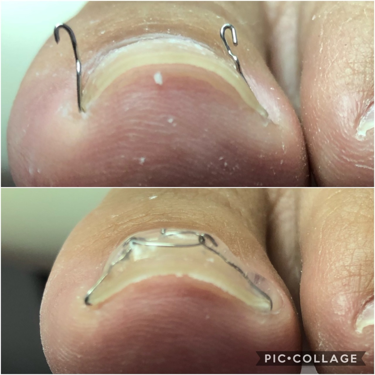 ②爪と皮膚の間にワイヤーを入れるので痛みはほとんどありません。