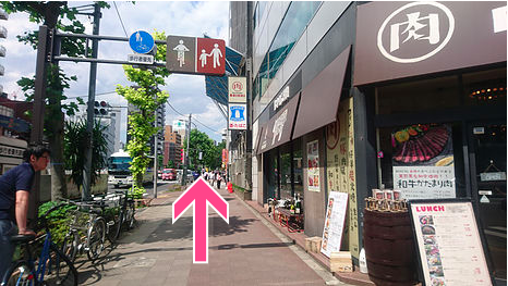 5 出口の階段をのぼったらそのまま真っ直ぐ横断歩道を渡ってください。